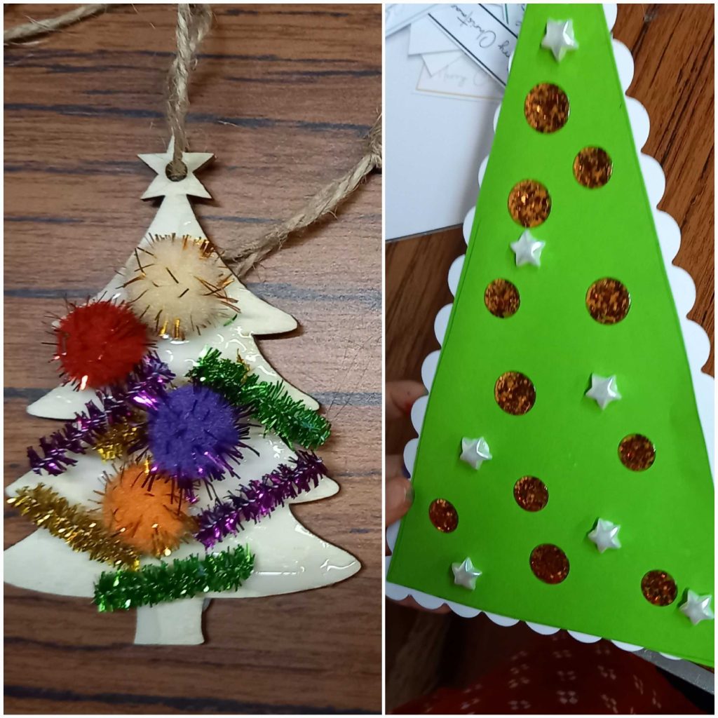 There was a big Christmas Tree in the hall; we made some decorations